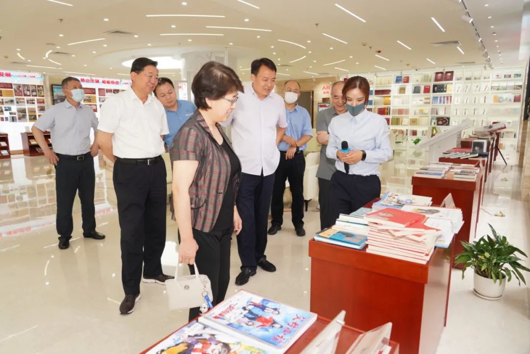 陈宁一行还参观了集团社史馆,详细了解了集团的历史沿革、发展成就、重点出版物等。