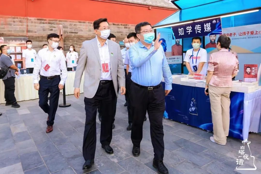 9月8日,由北京市文物局、西城区人民政府主办的第三届“白塔夜话”系列活动在北京妙应寺拉开帷幕,此次活动以“数字化助力文物活起来”为主题,分为主会场、分会场、“白塔妙会”文创市集等。北京出版集团党委书记、董事长康伟出席当天活动。