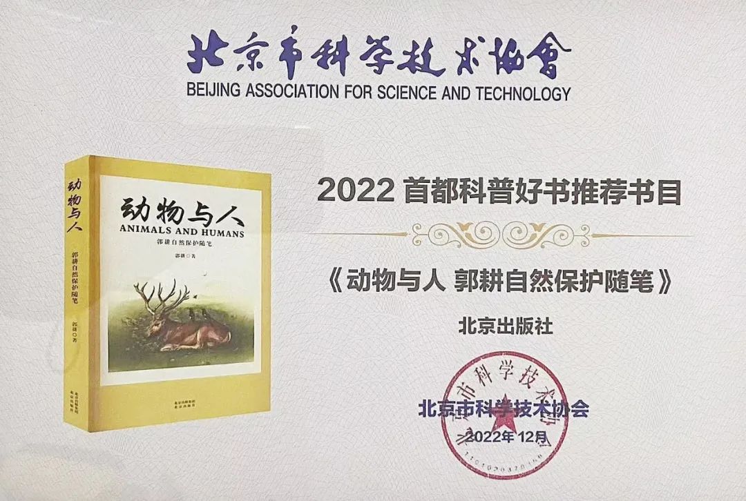 近日,“2022首都科普好书”推荐书目公布,北京出版集团北京承启文化传播有限公司策划出版的“北京自然观察手册”丛书、《动物与人 郭耕自然保护随笔》入选。