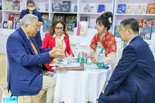 第十五届中华图书特殊贡献奖获得者、沙特阿拉伯出版家、阿拉伯文学出版中心社长穆斯法尔·法拉赫·萨比阿先生在图博会期间2次专程到访北京出版集团,深入开展实地考察、产品调研及多层面合作洽谈。