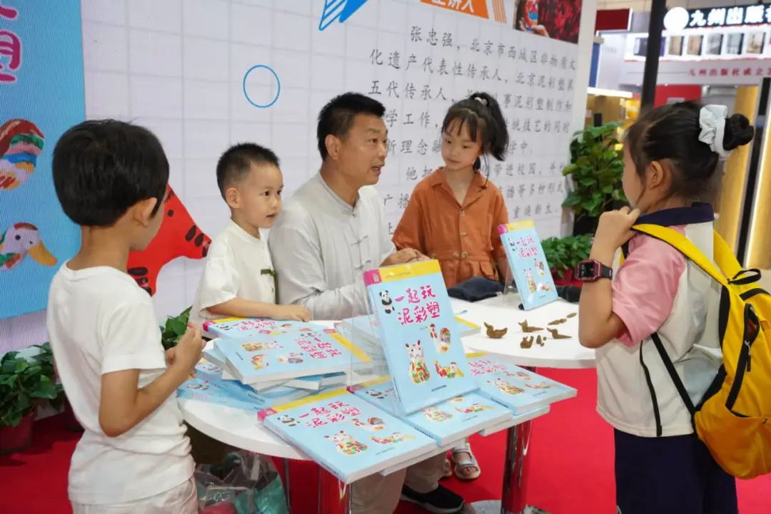本届书博会,集团邀请专家学者、资深出版人通过线上、线下组织举办十余场丰富多彩的特色阅读体验活动。开展首日,《一起玩泥彩塑》作者、北京市级非物质文化遗产“北京彩塑”代表性传承人张忠强,现场带领大小读者们一起“花式玩泥巴”,感受这项古老的民俗艺术的独特魅力。