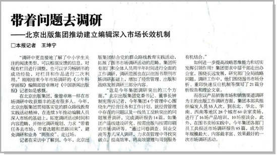 媒体报道:带着问题去调研 ——北京出版集团推动建立编辑深入市场长效机制